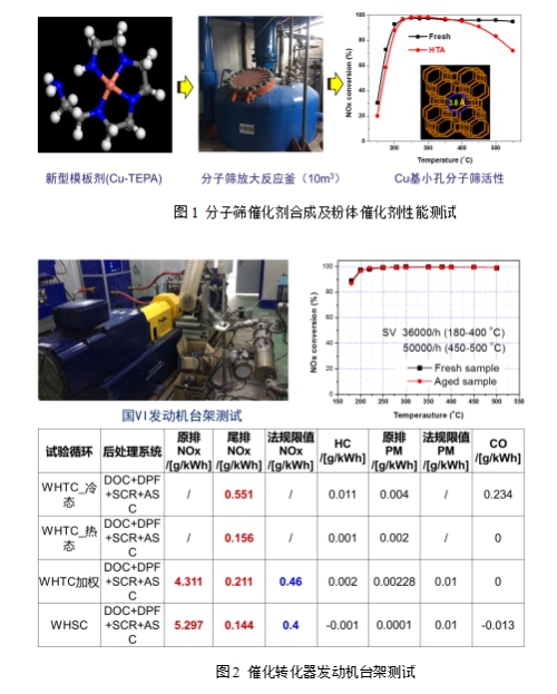 以柴油車為代表的移動源氮氧化物(NOx)排放占我國排放總量的近一半,是灰霾、光化學煙霧等大氣復合污染形成的重要原因,亟需重點控制。針對柴油車NOx排放控制,研發了具有自主知識產權的高活性、高水熱穩定性的小孔分子篩催化劑,實現了催化劑的噸級放大合成;設計制作了后處理催化轉化器,可使重型柴油車NOx排放滿足國六標準。