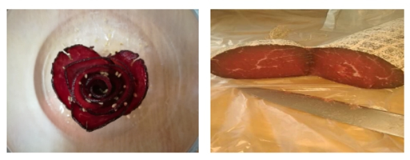 發(fā)酵牛肉火腿是一類以新鮮衛(wèi)生牛胴體分割肉為原料,在嚴(yán)格控制溫濕度環(huán)境條件下,采用低溫腌制、中溫發(fā)酵干燥等工藝加工而成的一類即可直接食用,又可以烹飪加工成各類美食牛肉菜肴的發(fā)酵肉制品。產(chǎn)品具有食用安全、形態(tài)誘人、風(fēng)味獨特、口感鮮嫩、營養(yǎng)豐富、富含有益生菌以及功能肽類等功能性美食特點。