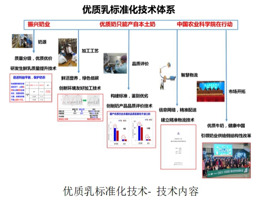 長期以來優質乳標準化技術缺失,一直是制約奶業優質發展的關鍵技術瓶頸。優質乳標準化技術突破了生鮮乳分級、低碳加工工藝、優質乳評價三大關鍵技術難點。一是成功構建“奶及奶產品質量安全與營養品質評價數據庫”,研發出我國首個生乳用途分級技術,解決了奶源不分等級混合使用,造成大量優質奶源浪費、優質難以優價的重大產業難題。二是開發創建優質乳綠色低碳加工工藝,實現優質奶源與優質加工工藝融合,引領奶業從數量型奶業升級為優質綠色奶業,顯著提升了國產奶的核心競爭力。三是研發建立優質乳產品品質評價技術,揭示國產奶與進口奶的區別在于熱傷害,首次提出“優質奶產自本土奶”的科學理念,成為奶業供給側結構性改革的突破口。