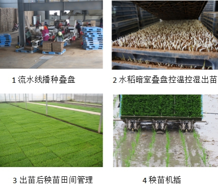 水稻疊盤出苗育秧技術針對機插育秧規模小、社會化服務能力弱,育秧環節出苗差、不整齊、爛種爛秧等問題,通過暗室疊盤,控溫控濕出苗,解決出苗難題,出苗后分散育秧,便于育秧管理及培育壯秧。應用該技術出苗可提早2-4天,出苗率提高10-20%,且秧苗健壯,育秧能力大幅提高及成本下降,近年該技術在浙江、湖南、江西等省年推廣超500萬畝,社會經濟效益顯著。入選中國農業科學院2018年十大科技進展及2019年農業部主推技術。