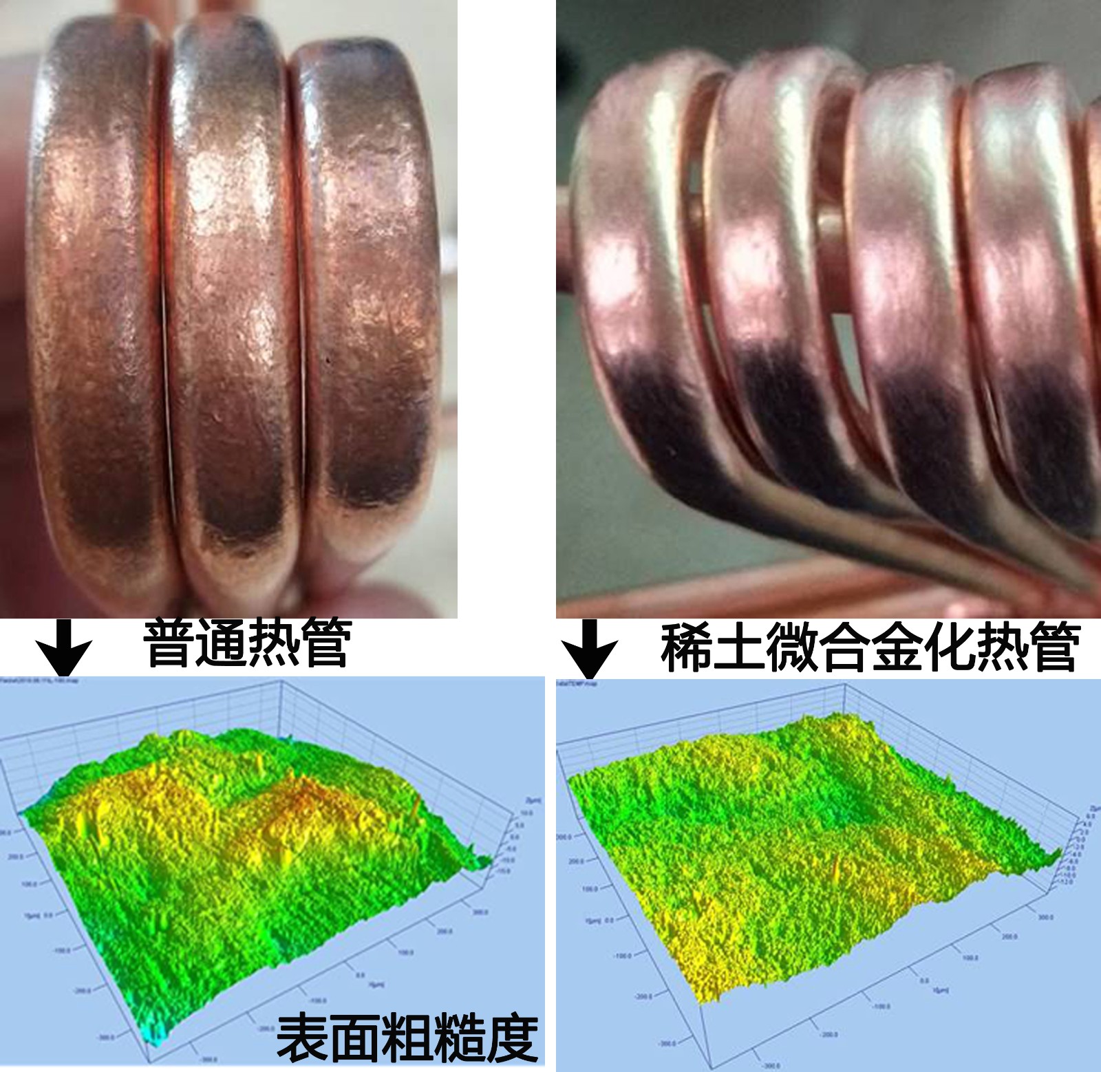 本科技成果通過(guò)稀土微合金化作用,實(shí)現(xiàn)了高功率熱管材料凈化除雜與弱化硬取向織構(gòu),抑制了熱管表面的粗糙缺陷,提高了熱高的散熱功率。