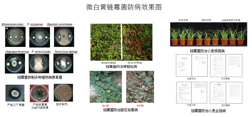 本成果展示了一株從海洋污泥中分離篩選得到的微白黃鏈霉菌,其不僅可以產(chǎn)生具有幾丁質(zhì)酶活性的物質(zhì),還含有豐富的次級(jí)代謝產(chǎn)物基因簇,具有廣譜的抑真菌活性;同時(shí),在我國(guó)山西、山東、河北、河南等十個(gè)省市、連續(xù)多年的田間實(shí)驗(yàn)表明該菌株制劑可以有效防治多種植株土傳真菌病害,如甜瓜枯萎病、小麥根腐病、小麥全蝕病、棉花枯黃萎病、辣椒疫霉病等,具有很好的應(yīng)用前景。利用農(nóng)業(yè)廢棄物,我們開(kāi)發(fā)了一套鏈霉菌固體生產(chǎn)技術(shù),其孢子濃度可以達(dá)到1010個(gè)/g,具有規(guī)模化生產(chǎn)的潛力。